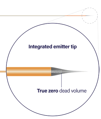 - Integrated emitter with zero post-column dead volume.