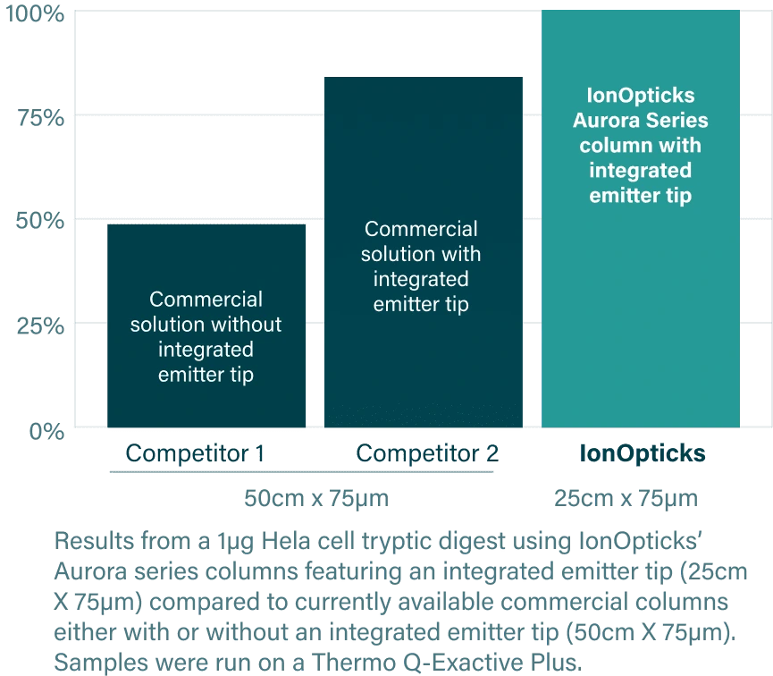 Odyssey Series columns consistently deliver 20-25% more identifications compared to longer columns from competitors.