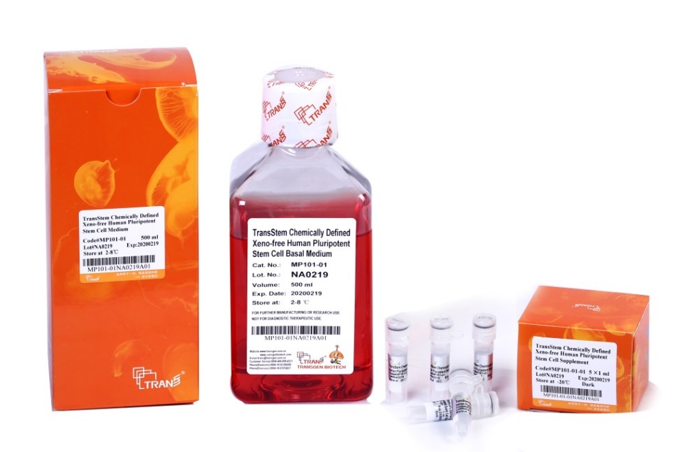 TransStemTM Chemically Defined Xeno-free Human Pluripotent Stem Cell Medium is a complete, chemically defined and xeno-free growth medium for the expansion of human pluripotent stem cells (hPSCs) under feeder-free conditions. The formulation is modified for the robust proliferation of hPSCs in the undifferentiated state.