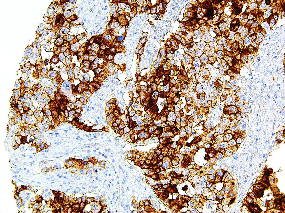 CA-125 is normally found in epithelial cells of Fallopian tube, endometrium and endocervix, pancreas, colon, gall bladder, stomach, kidney, apocrine sweat gland, mammary gland, and mesothelial cell lining of pleura, pericardium and the peritoneum. Staining with CA-125 reacts positively with ovarian malignancies, cervical carcinoma, endometrial and bladder adenocarcinoma, seminal vesicle carcinoma, and anaplastic lymphoma.