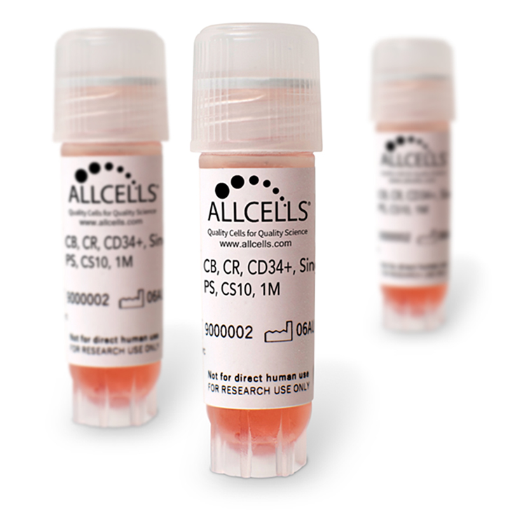 Cord Blood products are collected from a single umbilical cord. Multiple cord blood units may be combined during processing for mixed donor products. AllCells Cord Blood products are offered cryopreserved and in the format of Isolated Cells.