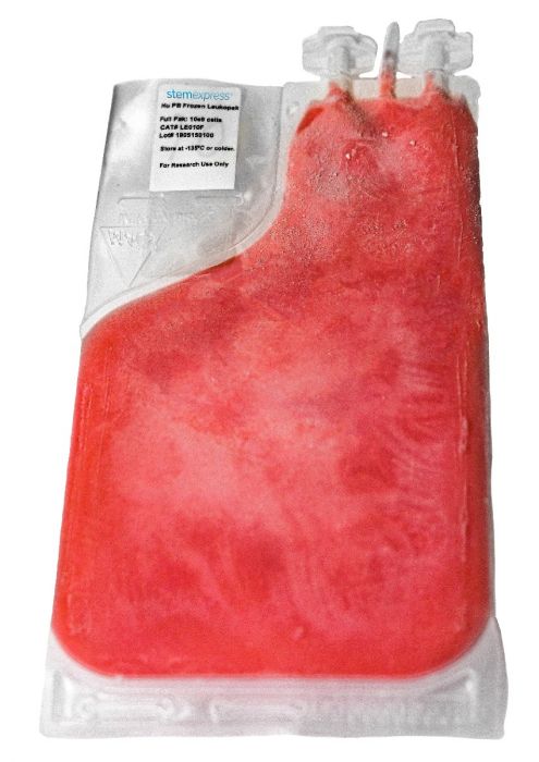 Frozen Leukopaks are collected from IRB consented healthy donors at our FDA-registered Stem Cell Collection Center. Using the Spectra Optia® Apheresis System, cell-rich peripheral blood mononuclear cells (PBMCs) are extracted using a continuous flow centrifugation system directly into a sterile collection bag containing the anticoagulant ACD-A. Besides the PBMCs, which consist of lymphocytes and monocytes, each Leukopak will also contain minimal amounts of granulocytes and red blood cells.