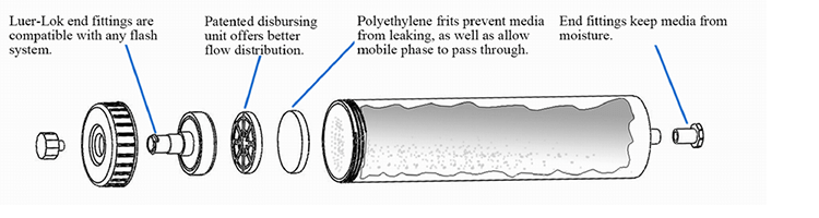 Empty Flash Columns from Hawach Scientific allows the end-user to add their own sorbet according to a different application. Our Empty Flash Columns(Empty solid load cartridge with the screw cap, frits, tips, and O-ring, and end tips and disbursing unit for columns larger than 40g ), we provide users convenience for themselves manual assembly for a flexible sample loading method: solid load or their direct liquid injection. The standard Luer-lock end fittings are the idea for quick and easy connection to most of the flash systems such as Biotage, and Yamazen.