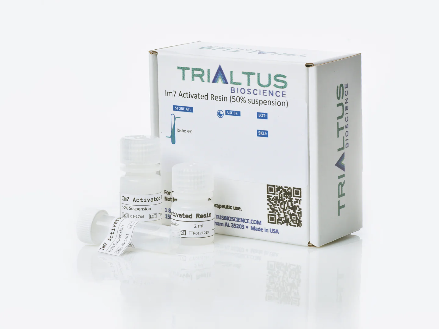 Resin upholds its effectiveness for multiple reactivations. TriAltus’ Im7 4B Resin retains a 1:1 molar binding ratio during repeated uses. The Im7 4B Resin has been used to purify a variety of proteins – including membrane and multi-subunit proteins.