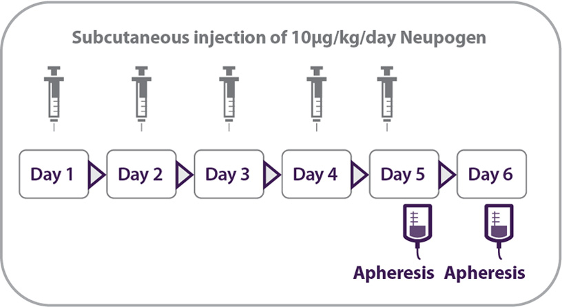 Filgrastim (Neupogen) 10ug/kg/day x 5 days, apheresis on day 5 and 6