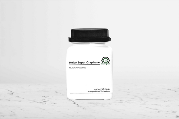 Holey Super Graphene (hG), often referred to as holey graphene in the academic community, is a specialized form of graphene characterized by intentional nanometer-sized or mesoscale holes, which confer unique electronic and chemical properties. This material retains the properties of graphene while at the same time adding new capabilities. In addition to the known properties of graphene, it stands out with its superior properties such as ultra-high conductivity, high surface area and better electrochemical performance. Buy Holey Graphene now and enhance your research & projects efficiancy.