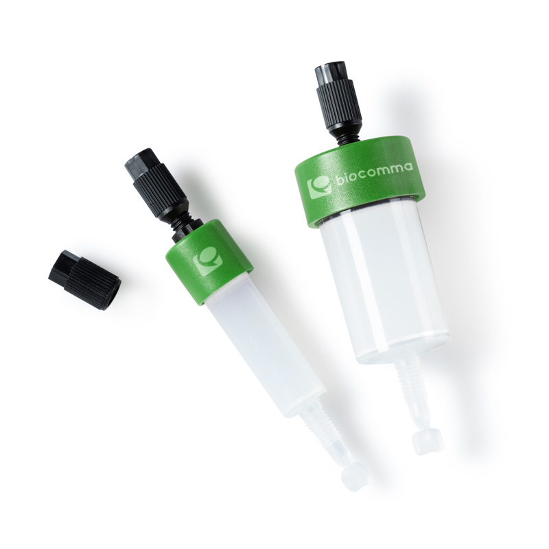 ● Simply connect to syringes and peristaltic pumps, or other liquid phase purification systems such as ÄKTA