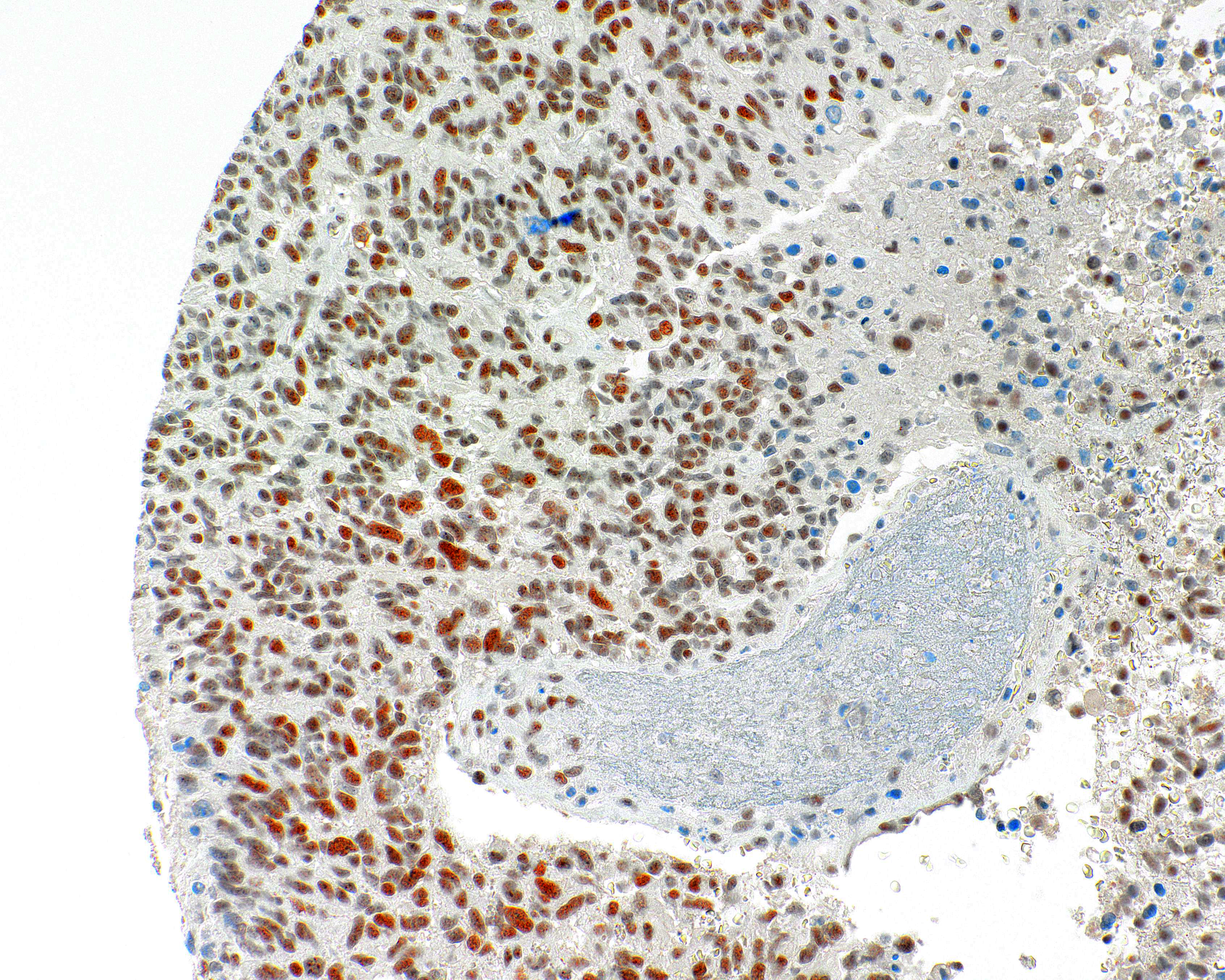 ATRX is involved in the remodeling of the nucelosome structure, and facilitate the transcription and replication. ATRX loss occurs in grades II/III astrocytomas and glioblastomas and comes together with IDH1 mutations. Detection of ATRX with IHC acts a sensitive method to identify the mutations.